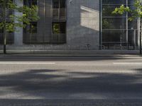 This is an image of a modern architecture building in Berlin, Germany. The cityscape showcases a mix of residential areas and business districts. The roads, lined with trees and surrounded by buildings, create a dynamic urban design. The facade of the building casts a hard shadow on the road surface, adding depth to the scene. This photo captures the essence of city life in Berlin, a bustling and vibrant European city known for its architectural charm and business opportunities.