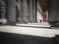 A daytime view of the iconic Altes Museum in Berlin, Germany. The historic architecture and classic design stand against a backdrop of urban life. Sunlight casts shadows and creates a beautiful play of light and shadows on the building's surface.