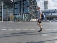 A modern architectural marvel in the heart of Berlin. The high-rise building stands tall against the city skyline. The busy asphalt road and zebra crossing add to the urban feel. Europe's fashion-forward capital.