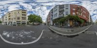 Aerial view of a classic European city, Berlin, showcasing modern and classic architecture. The road cuts through residential and urban areas, with shops and art districts in the foreground. Shadows create a striking contrast on the asphalt.