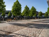 This is an image of a sunny day in Berlin, Germany. The city's architecture is showcased in the foreground, with buildings and roads made of asphalt. Trees and vegetation provide shade and add to the urban design. The image also features a pier and jetty, symbolizing city life and the connection to waterways. The clear sky emphasizes the beauty of the city and its European charm. This photo captures the essence of Berlin and its vibrant urban landscape.