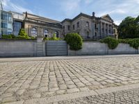 This image showcases the modern architecture of Berlin, Germany. The city's skyline features a variety of buildings, from residential homes to office buildings. The clear sky provides a backdrop for the urban design and open spaces. The cobble stone road surface adds charm to the city's aesthetic. The mix of public spaces and business districts reflects the dynamic nature of Berlin. This photo captures the essence of Berlin's architecture and the bustling nature of the city.