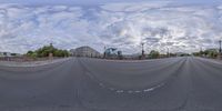 a reflection view of an empty city street from a fish eye lens, which is shaped like a highway