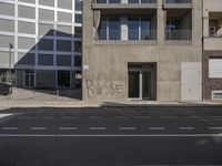 This is an image of a modern residential area in Berlin, Germany. The photo captures a view of the city's urban design and architecture, with concrete buildings and office buildings lining the road. The grey facade of the condominiums and the business district create a sleek and modern atmosphere. The image showcases the vibrant city life and the bustling streets. The photo represents the urban landscape and the residential neighborhoods of Berlin.