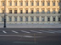 This stock photo features a view of a busy city street in Berlin. The image shows a crosswalk with painted markings on the road surface, surrounded by large buildings in the background. The urban design and urban architecture are prominent in this shot, with the symmetrical facade of the buildings adding to the visual appeal. The photo captures the essence of city life and captures the classic architecture of Berlin. The clear sky and the dawn light enhance the overall aesthetic of the image. Berlin, the capital city of Germany, is known for its vibrant urban landscape, museums, and rich European history.