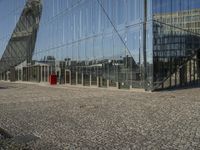 A sunny day in Berlin, Germany showcases the city's mix of modern and historic architecture. Cobblestone-lined streets lead to open plazas with glass-walled buildings and lush vegetation. The chain-link fences add a touch of urban design.