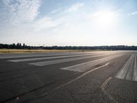This is an image of a sunny day in Berlin, Germany. The city landscape features asphalt roads and open spaces with grass. The composite materials used in urban design create a modern and vibrant atmosphere. The clear sky and sunlight give the picture a bright and cheerful ambiance. In the distance, you can see the horizon, a lake, and the city's airport, blending seamlessly with the natural environment. This photo captures the essence of city life in Berlin, with its tints and shades of sunshine and a perfect example of Europe's urban design.