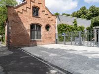 This image showcases the classic architecture of a brick building in Berlin's business district. The ornate design features a beautiful arched entrance to the side. The cobblestone surface in front of the building adds to the charm and character of the scene. This photo captures a day in Berlin, where historical architecture and modern office buildings coexist harmoniously. The building could be a museum or an office building, adding an air of mystery to the picture. It is a perfect representation of the unique blend of old and new that Berlin has to offer.