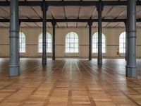 A classic architecture warehouse in Berlin with straight roads leading to it. The profile of the building stands tall against the clear sky. Inside, dancers are rehearsing their ballet routines.