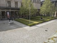 An aerial view of Berlin, Germany showcasing classic architecture, cobblestone roads, and green open spaces. The Alte Nationalgalerie, a museum with elevated floors, stands out among the buildings. Urban design combines with the unique European charm of the city.