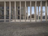 This photo showcases the James Simon Gallery, a modern architectural marvel in the vibrant city of Berlin, Germany. The building features a sleek facade with floor-to-ceiling windows and prominent columns. The cobblestone street and parking lot add to the urban charm of the scene. The James Simon Gallery is a popular tourist attraction and a must-visit for architecture enthusiasts. Its design seamlessly blends classic and contemporary styles, making it a perfect example of urban design in Europe. The sandstone material of the building's exterior adds a touch of elegance and sophistication. Whether you're a tourist or a local, the James Simon Gallery is a great destination to explore and experience the city's rich cultural heritage.