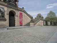 This is an image of a beautiful street in Berlin, Germany. The classic architecture and cobblestone road create a charming and picturesque scene. The buildings showcase a mix of different architectural styles, reflecting the city's rich history and heritage. Towering trees line the road, adding a touch of green to the urban setting. In the distance, you can see the grand facade of the Alte Nationalgalerie, a popular tourist attraction and museum. This photo captures the essence of city life in Berlin, and is a perfect representation of the urban design and European charm the city is known for.