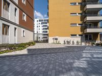 A modern residential building in Berlin, Germany. The clear sky highlights the sleek architecture and clean lines, while the surrounding urban design creates a vibrant city life. This is the epitome of European city living.