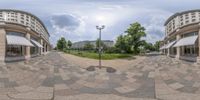 A vibrant city street in Berlin, Germany. Architectural diversity is showcased through a mix of residential homes, office buildings, and shops. The street is lined with trees and colorful facades, creating a lively urban atmosphere.