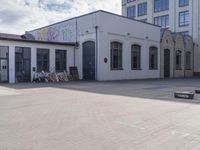 A view of a charming courtyard in Berlin, Germany. The historic building with its beautiful facade and windows adds to the city's charm. The open space and flooring create a welcoming atmosphere. A perfect blend of urban and traditional elements.
