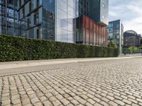 Snapshot of a modern metropolitan area in Berlin, Germany. Clear sky highlights the beautiful architecture and concrete office buildings. Cobble stone road surfaces and lush greenery add to the urban charm.