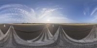 A calm and sunny day in Berlin, Germany. The view showcases the city's urban design with a straight road, empty parking lot, and long white lines leading in various directions. The clear sky and natural environment create a serene atmosphere.