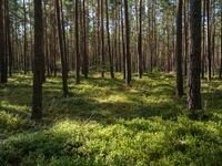 A lush landscape in Berlin, Germany. The open spaces and forests provide a peaceful escape from the bustling city. Deciduous trees with green trunks and branches create a vibrant and natural environment. Incidental people can be seen enjoying the grassy surface.