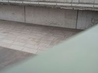 Overhead view of a modern architecture in Berlin. The urban design features an elevated concrete wall, creating a high-tech surface. This European city blends history and innovation in its urban landscape.