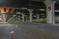 a empty parking garage filled with a lot of parking supplies and trash on the ground