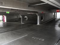 This stock photo showcases the modern architecture of Berlin, Germany. The city's urban design is emphasized by the juxtaposition of grey concrete buildings and the asphalt road. The parallel lines and symmetrical layout create a sense of order and style. The open space and parking deck add to the city's infrastructure and convenience. The photo was taken during the day, capturing the tints and shades of the building's composite material. This image represents the vibrant urban life and public transportation system in Berlin.