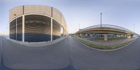 A series of photographs capturing the modern architecture of Berlin, Germany. The images showcase the city's business district, with its sleek office buildings, concrete bridges, and glass facades. The clear skies and low traffic create a serene urban environment.