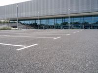 Empty parking lot near a modern office building in Berlin's financial district. The open space showcases urban design and modern architecture. A perfect setting for conferences and business meetings in the heart of Europe.