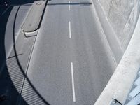 A high-angle view of a straight road in Berlin, Germany. The modern architecture and concrete walls showcase the urban design of the city. This bustling European city is bustling with city life.