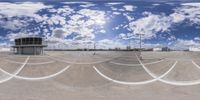 A modern skateboard park in Berlin, Germany. The clear sky reflects in the concrete surfaces, creating a stunning visual effect. The park is surrounded by lush green grass and trees, providing a peaceful urban oasis. A perfect spot for skateboard enthusiasts to enjoy a sunny day.