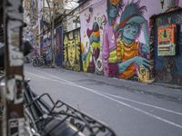 A vibrant street art mural in Berlin's trendy neighborhood. Colorful graffiti covers the walls, adding to the artistic atmosphere. Cobblestone lanes and urban courtyards reflect the city's unique urban design. Discover the energetic city life and rich artistic culture of Berlin.