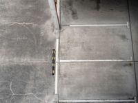 This image showcases the modern architecture and urban design of Berlin, Germany. The overhead view captures an empty parking garage in a warehouse building. Yellow safety markers line the concrete floor, adding a pop of color to the monochrome scene. The elevated perspective gives a top-down view of the urban landscape, highlighting the city's open spaces and road network. This photo represents the high-rise, high-tech atmosphere of Europe's urban hub. It is the perfect depiction of a modern, architectural cityscape in Germany.