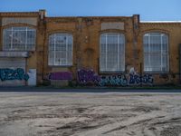 Discover Berlin's dynamic art district featuring a graffiti wall against a backdrop of rugged, concrete surfaces. A clear day in this European city highlights urban street art, encapsulating the vibrant city life of Berlin, Germany.