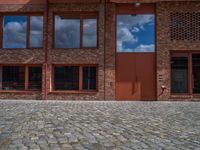 Urban cityscape in Berlin, showcasing modern residential architecture. Cobblestone roads lead through historic brick courtyards. A typical day in Europe's cultural hub, Germany.