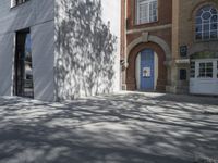 This stock photo features a man on a bike riding down a sidewalk near some buildings and a tree with a blue door. The photo perfectly captures the modern architecture of Berlin, Germany. The city's architectural gems provide a stunning backdrop as the man cycles through the vibrant neighborhood. The image showcases the urban design and business district atmosphere of the European city. The architectural details, such as the arches, facades, and flooring, add to the charm of the scene. The blue door and the courtyard contribute to the overall aesthetics. Taken during the day, the photo showcases the bright city life and the shadow patterns created by the structures. The photo is a great representation of the city's urban landscape and thriving business scene.