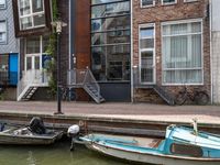 This stock photo showcases a picturesque scene in Holland, with two boats moored to the shore. The image captures the harmony of modern architecture and the natural beauty of the city's waterfront. In the foreground, there are some stairs leading up to residential buildings, along with bicycles parked beside them. The clear blue lake, surrounded by urban design elements like piers and jetties, adds to the charm of this bustling city. The image perfectly captures the essence of city life in Holland, with its well-paved roads and classic architecture. This captivating photo can be used to depict the residential areas, urban lifestyle, and infrastructure of Holland or the Netherlands, which is located in Europe.