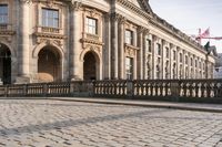The Bode Museum in Berlin, Germany, is a stunning example of classic architecture. This grand stone building features a balcony and a picturesque stone wall. The museum is situated in the heart of the city, offering visitors a fascinating exploration of art and history. In this photo captured on a clear autumn day, the museum stands prominently against the backdrop of blue skies and fluffy clouds. A road and a bridge can be seen nearby, adding to the urban charm of the scene. The cobblestone street in front of the museum complements the timeless aesthetic of the surroundings. Marvel at the European elegance and cultural significance of the Bode Museum, a must-visit destination for art enthusiasts and history buffs alike.