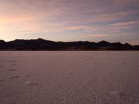 A stunning view of the Bonneville Speedway in Utah. The open space and desert landscape contrast with the snow-capped mountains in the distance. Contrails streak across the clear sky, adding an element of drama to the dark night. A mesmerizing sight near Salt Lake City.