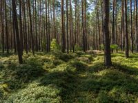 A lush green landscape in Brandenburg, near Berlin. The open road winds through the forest, surrounded by tall trees and a grassy surface. Perfect for off-road adventures and exploring nature.
