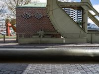A classic architecture cityscape in Bremen, Germany. The grey brick buildings and cobblestone roads create a charming urban design. Clear skies and hard shadows accentuate the timeless beauty of this European city.