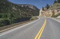 A scenic coastal road in British Columbia, Canada. The road winds through mountainous landscapes and lush vegetation. Clear skies and a sparkling ocean provide a stunning backdrop. Experience the beauty of Lillooet!