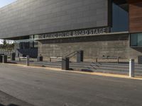 A clear day in Los Angeles showcases the city's modern architecture. The urban landscape is dominated by office buildings, with the Santa Monica business district in the foreground. Concrete facades and parking lots define the city's bustling urban design.