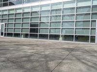 A modern architecture in the heart of a bustling city. The office building stands tall against a clear sky, casting a hard shadow on the concrete street below. The urban design creates a vibrant and dynamic atmosphere in the business district.
