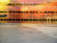 a skateboarder is in the foreground by a multi - colored building