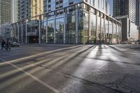 This stock photo features a busy city street in Montreal, Canada. The glass buildings in the background reflect the modern architecture of the city. The red light on the corner accentuates the urban environment. The road is made of asphalt, and there are shadow lines cast by the buildings. This bustling metropolitan area showcases the urban design and city life of downtown Montreal. The image captures the business district of Quebec, with various shops, storefronts, and office buildings. It represents the vibrant urban atmosphere and human settlement in this Canadian city.