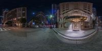 A vibrant night scene in downtown Los Angeles, California. Classic architecture blends with modern city life. City lights illuminate the streets and buildings, creating a mesmerizing cityscape. An urban design masterpiece.