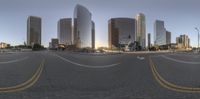Aerial view of downtown Los Angeles, California. The cityscape showcases a mixture of modern high-rise buildings and low-rise residential areas. Clear skies highlight the architectural diversity and urban design of this bustling metropolis.