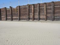 Coastal landscape in California, with a fence dividing the sandy beach from the open field. Clear sky above the ocean and rock formations create a picturesque view. Low tide reveals the shoreline and an expansive open space.