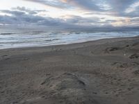 This stunning stock photo features a breathtaking view of a California beach at dawn. The image showcases a beautiful sandy beach and a sand hill, with the majestic ocean waves rolling in the distance. In the foreground, you can see people taking a leisurely stroll. The coastal landscape presents an open space and a sense of serenity, highlighting the natural beauty of this remarkable location. The high clouds add a touch of drama to the scene, enhancing the overall emotional impact. The image captures the essence of a break of day in California, with its elevated mountainous terrain and pristine shoreline. It is an ideal representation of the state's captivating natural environment.