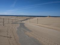 A coastal road in California winds its way through the desert landscape. The clear sky and sandy surroundings create a serene and picturesque scene. The road stretches out into the horizon, leading to the sparkling ocean.