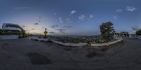 An aerial view of Los Angeles, California at dawn. The afterglow creates a beautiful atmosphere as it illuminates the cityscape. Classic architecture and modern skyscrapers stand tall in this metropolitan area.